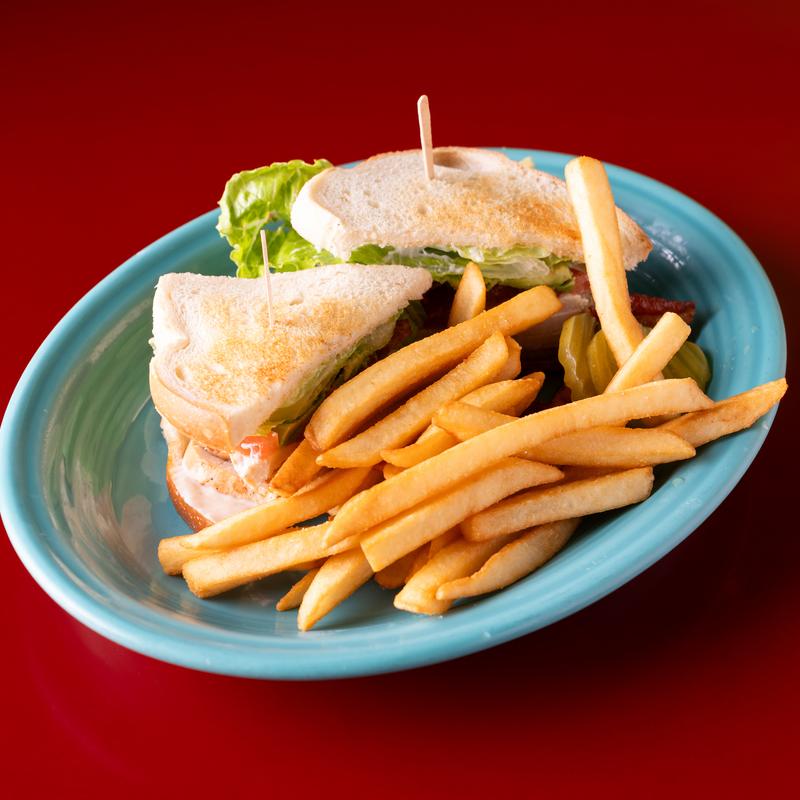 A triple-decker with bacon, turkey, Swiss cheese & 1000 Island.